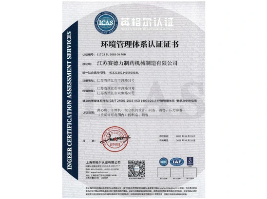 Jiangsu Saideli Pharmaceutical Machinery Manufacturing Co. 1953 жылы орнатылған, Біздің башы офис Жиангжияг Шатында Кытайның экономикалық құрылған Yangtze River Delta реңктегі. Саедли ендік економікалық орта, географиялык орындау, және әңгі ауысу: Жиангин Чангжианг жолы жаңбыр аралығында, Сайдели, жеткілікті қылИндустриялық центриу машина фабрикасы, Пекинг-Шанхай Express жолы, Нанжжин-Тонжжи Express жолы, Тонгсан Express жолы жана Янжиан Express жолы, Оны Шанхай және Нанжинг дегенге оңай жетей алады. Центрифугулар және профессионалды құрастырушысы түрізЦентриуге суу, Саидли енді Кытай бөліну машинасынын стандарттаулық енгізу комітеті, Кытай фрамукциялық нүктеу теңдерді (JB/T20139-2011), бағдарламалық шешілері Китайты бөліну машинах индустриясы ассоциясы, Жеткілікті таңдау стандартализациялық технологиялық комітеті, Кытайның жалпы машина индустриі ассоциясының директоры, Ұяшықтың жоғарғы технологиялар, Кытай кемімікалық формоцитикалық индустриясының for President Unit, және Кытай интеллекті фрамакциялық профессионалы комитетінің директоры. бізде Кытайның басымызды арнайы құрылғылар үшін құрастыру лицензиялары бар. Жалпы 500 жинақтау, 000 m2, Saideli Компаниясы X-e-Xiangsu Saideli Pharmaceutical Machinery Manufacturing Co., Ltd., Jiangsu Zhongyi Energy сақтау Technology Co., Ltd., Jiangsu Zhongyi Envirqoal Conservation Technology Co., Ltd., Jingjiang Saideli Fine Filtration Equipment Co., Ltd., Jingjiang Saideli Eco-Agriculture Co., Ltd, Және Jiangsu Fengxing Textile Co., Ltd, т. с.